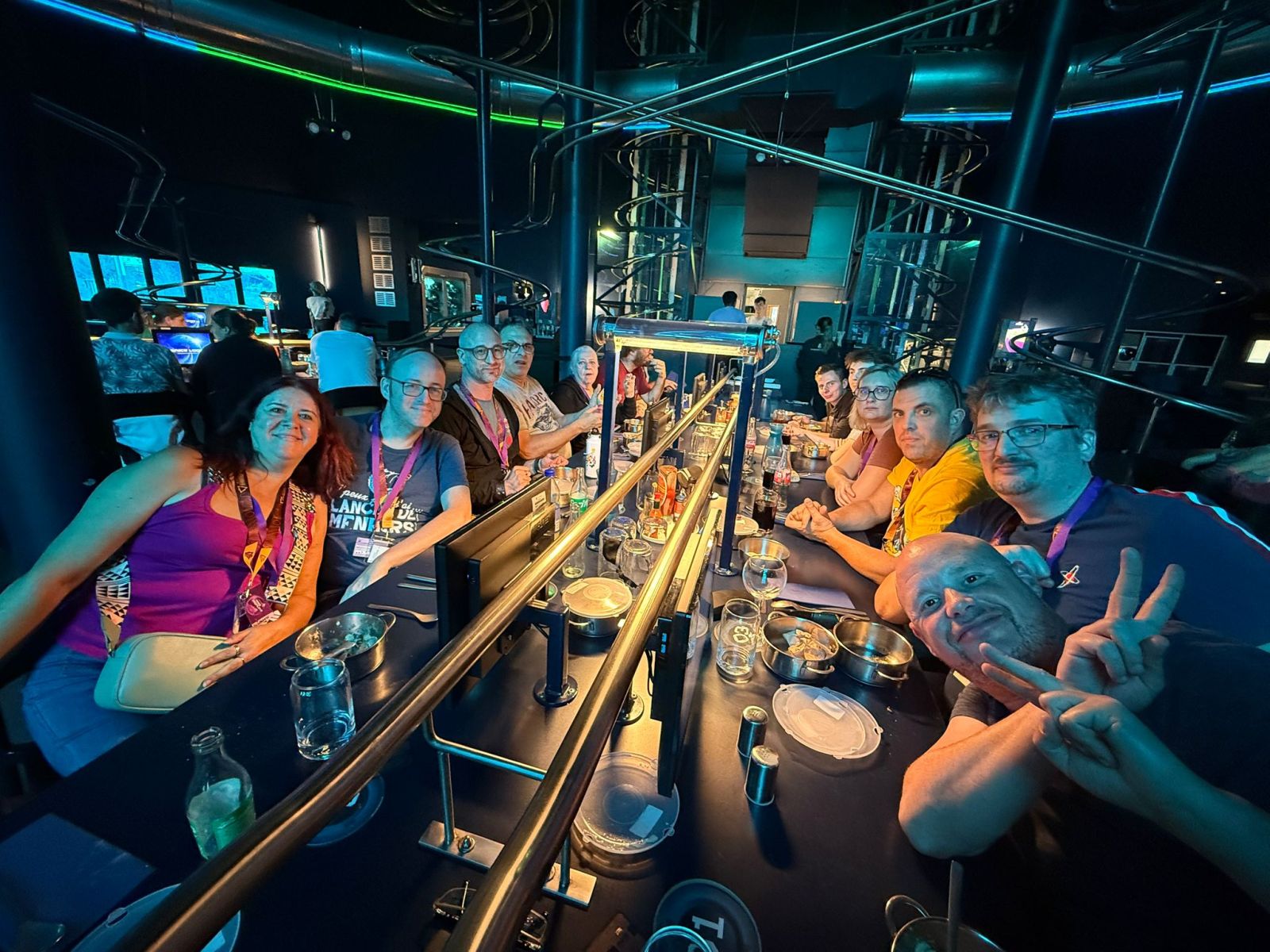 C'est un weekend riche en événements que nous avons pu passer au Futuroscope. Tout d'abord, par une demi-journée le vendredi au nouveau parc aquatique Aquascope. Puis le samedi matin avant l'ouverture officielle, nous découvrons la nouvelle attraction 2025 Mission Bermudes en compagnie de son chef de projet, Adrien Pereyrol qui nous dévoile tous les secrets. Après avoir fait un tour et visite des installations techniques (photos interdites), la visite a continué avec l'Extraordinaire Voyage où l'on a pu assister au fonctionnement depuis la passerelle des opérateurs. Pour profiter au maximum de cette journée, chacun a bénéficié d'un coupe-file offert par le parc. La soirée se termine avec un bon repas au restaurant Space Loop suivi du spectacle nocturne. Le dimanche étant une journée libre, chacun a pu profiter du parc et repartir à sa convenance.